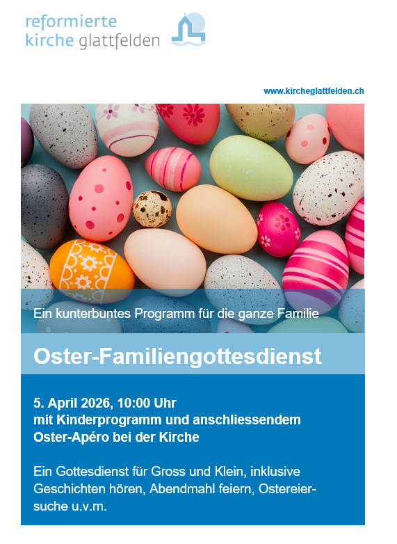 Im Anschluss an den Gottesdienst können die Kinder sich auf die Suche nach Ostereiern machen, und es gibt einen Osterapéro für alle bei der Kirche.